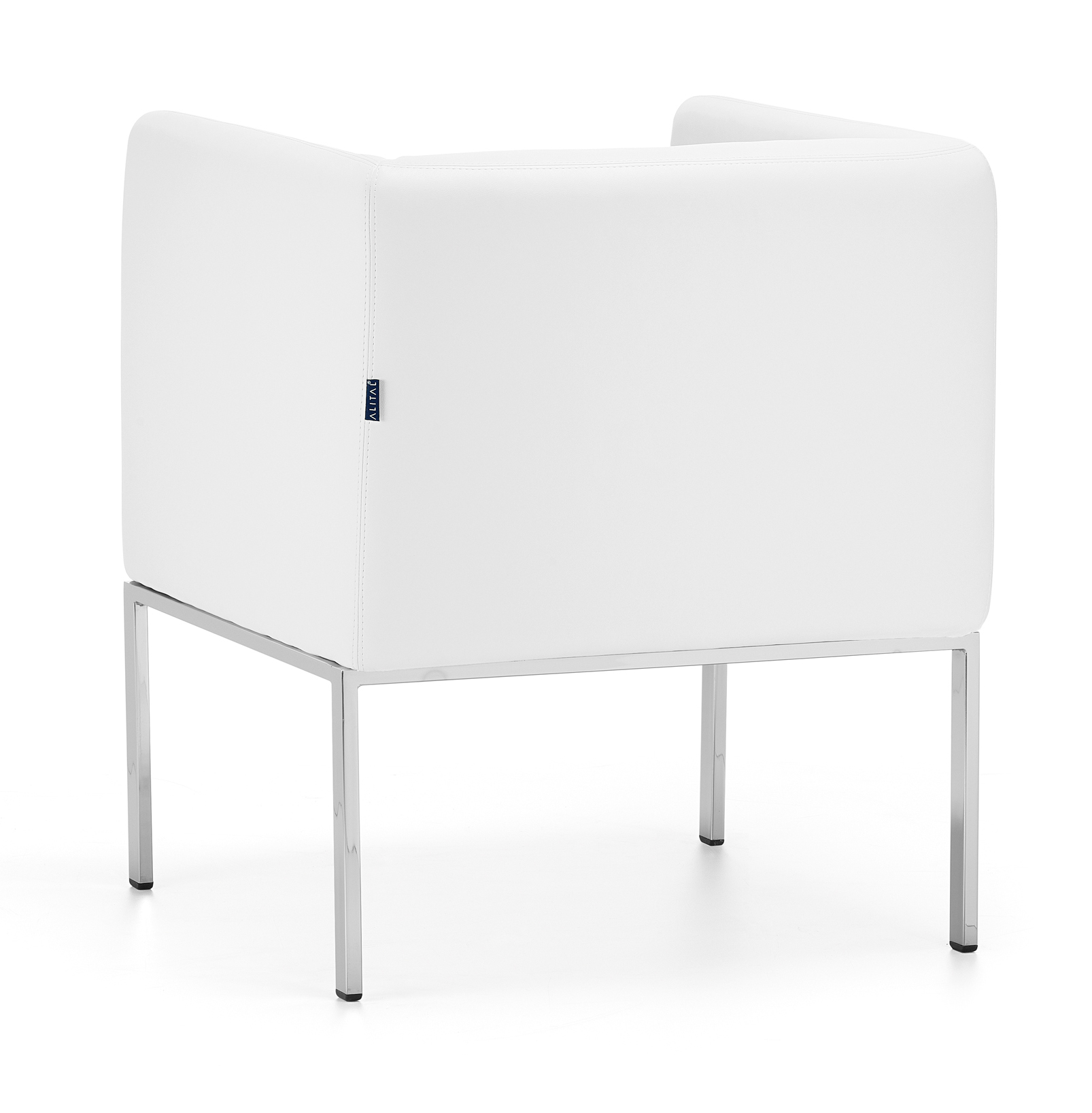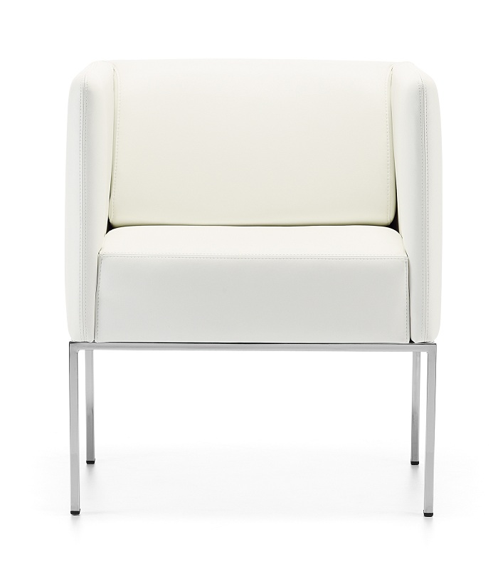 Estrutura disponível em tubo de aço de secção quadrada com acabamento cromado ou pintado a cinza RAL 9006 liso ou em integrada no sofá com 4 apoios de contato ao solo.